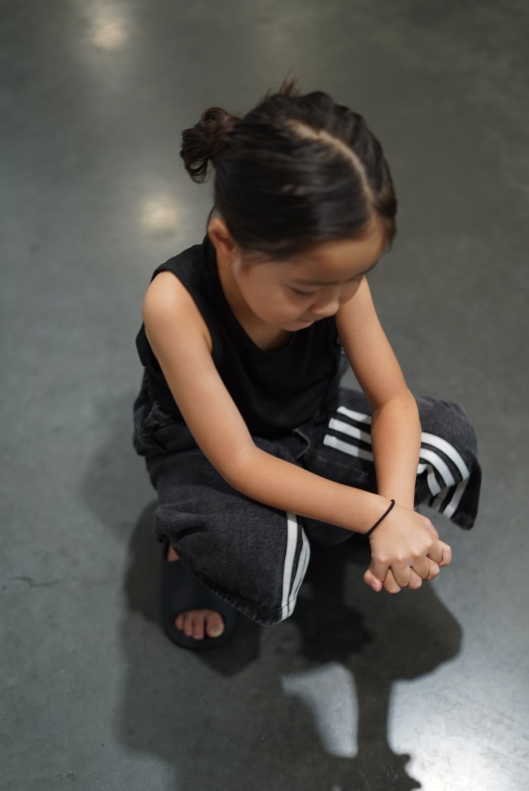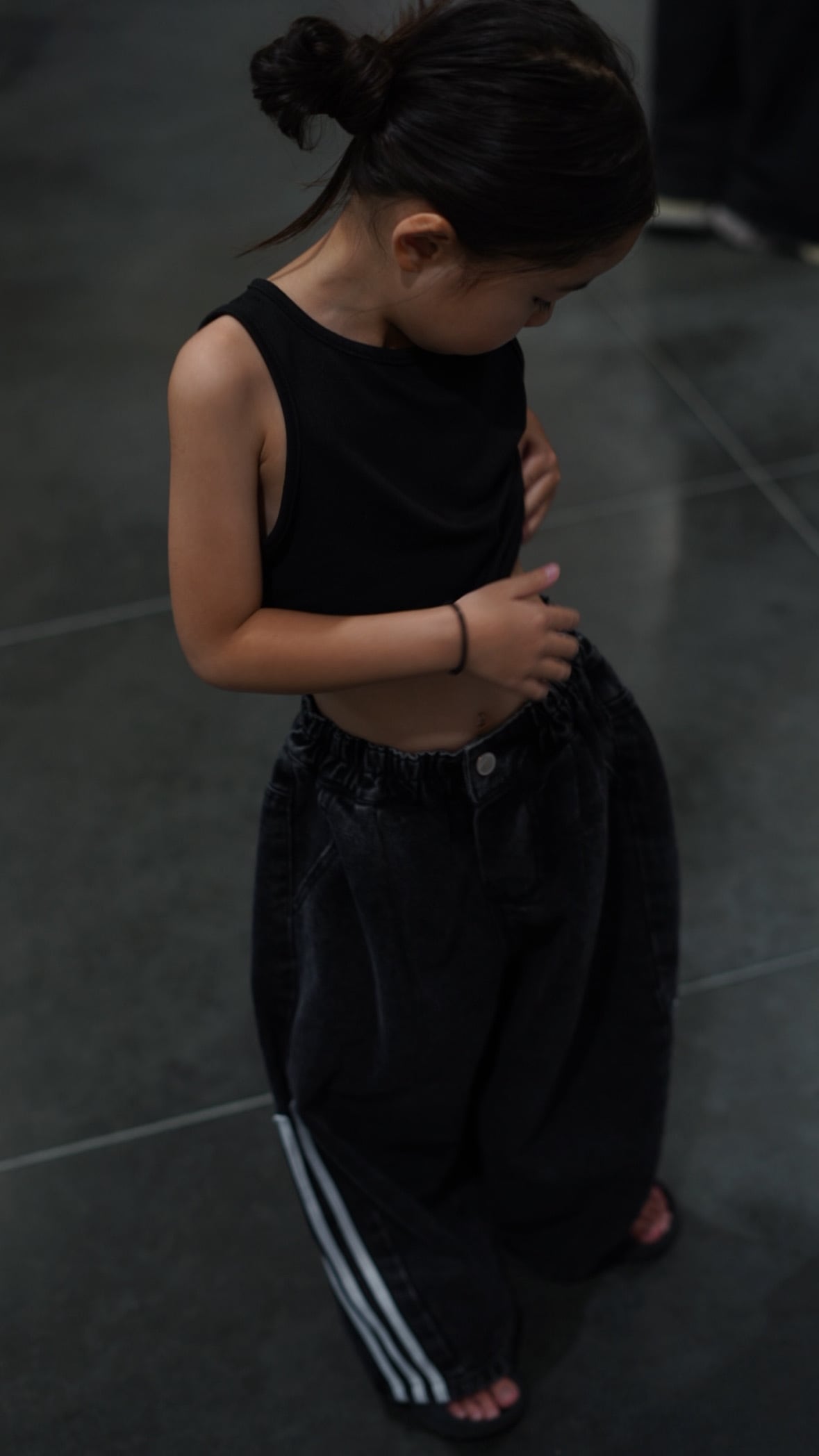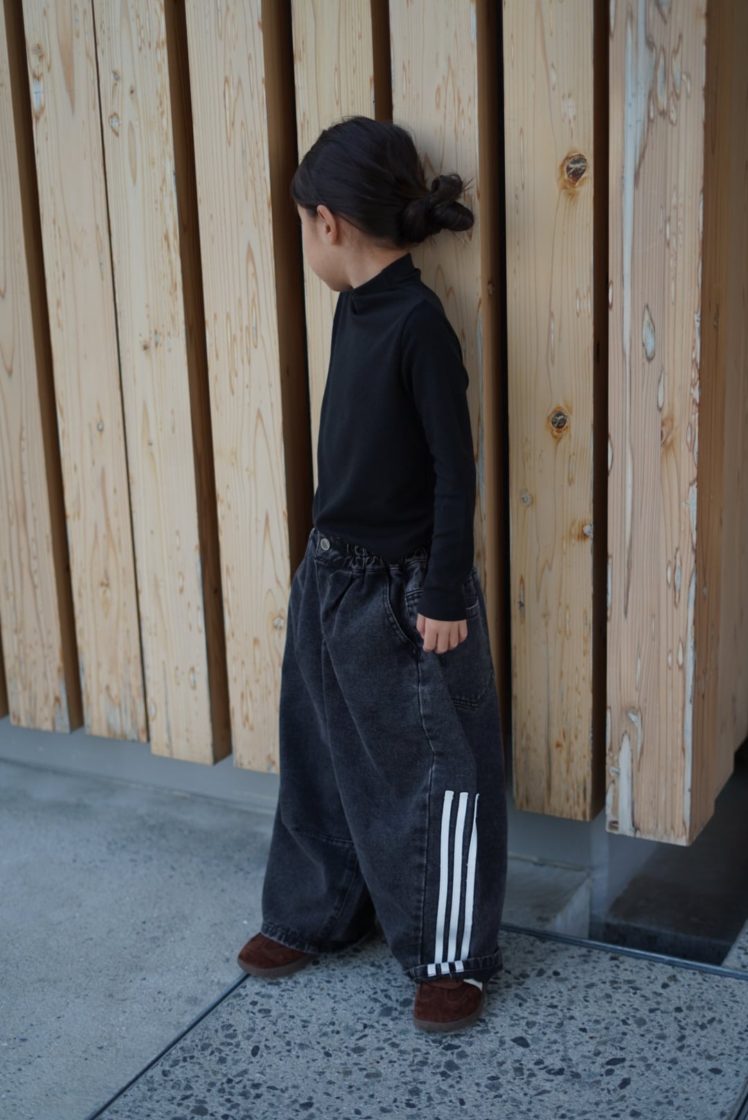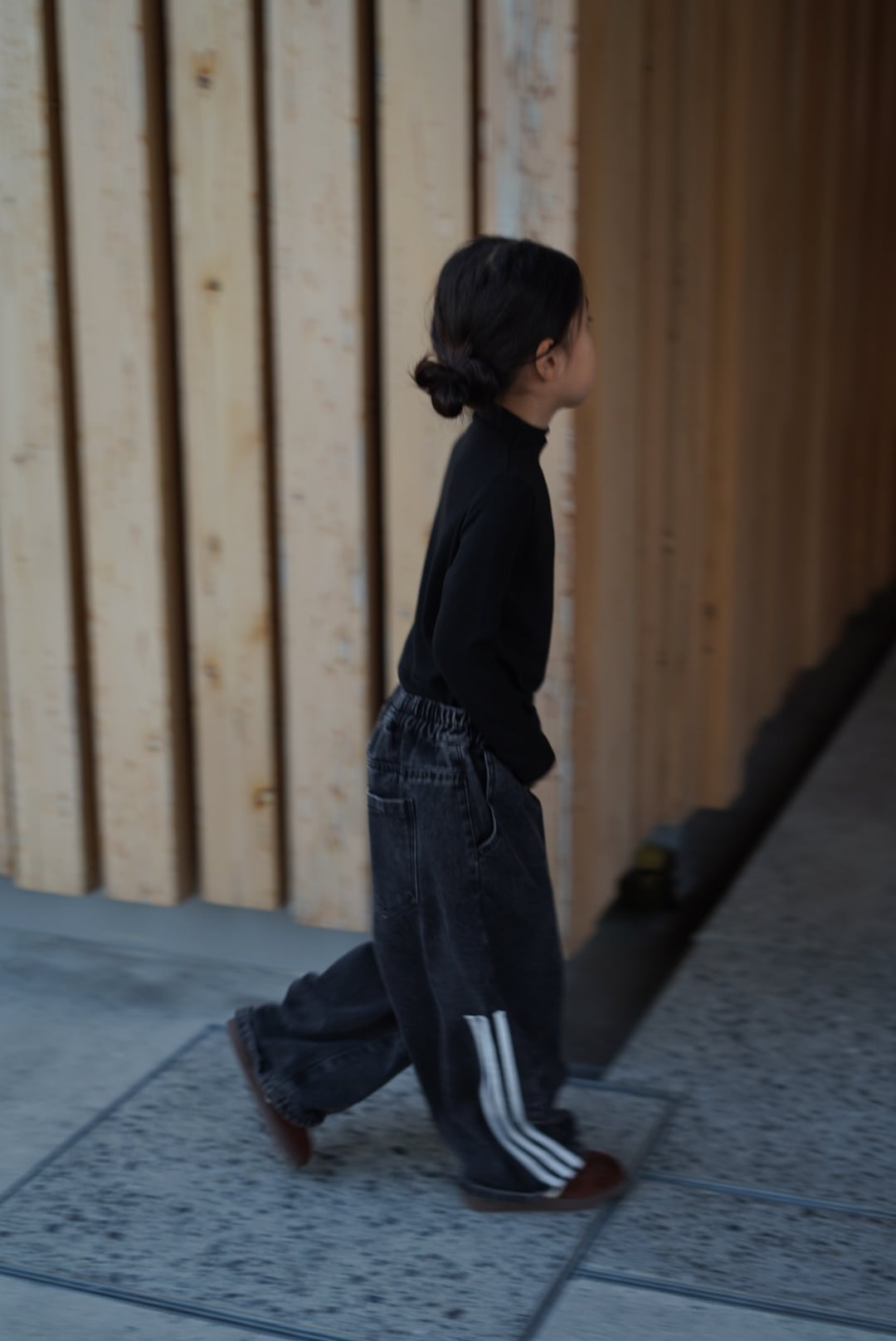 ルーズなオーバーシルエットにサイドラインがポイントのブラックデニム