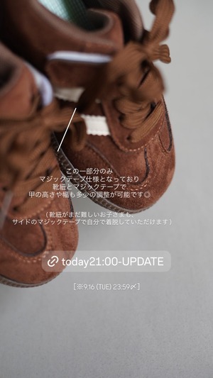 ・靴紐が難しいお子さまも、サイドのマジックテープで自分で履いていただけます