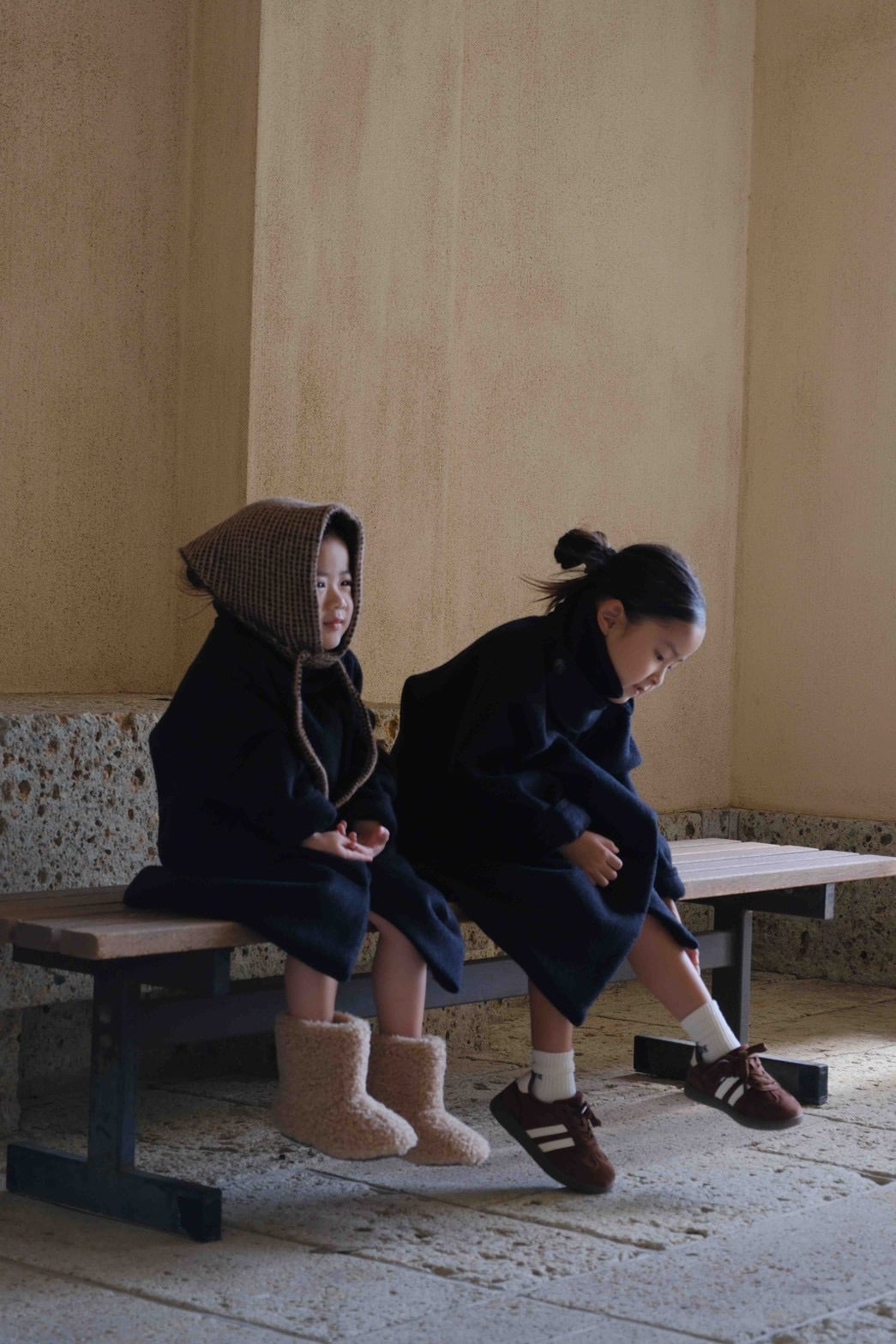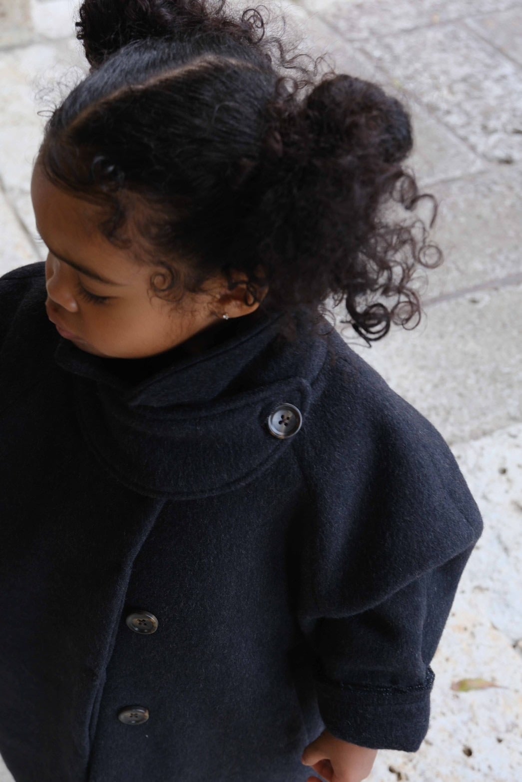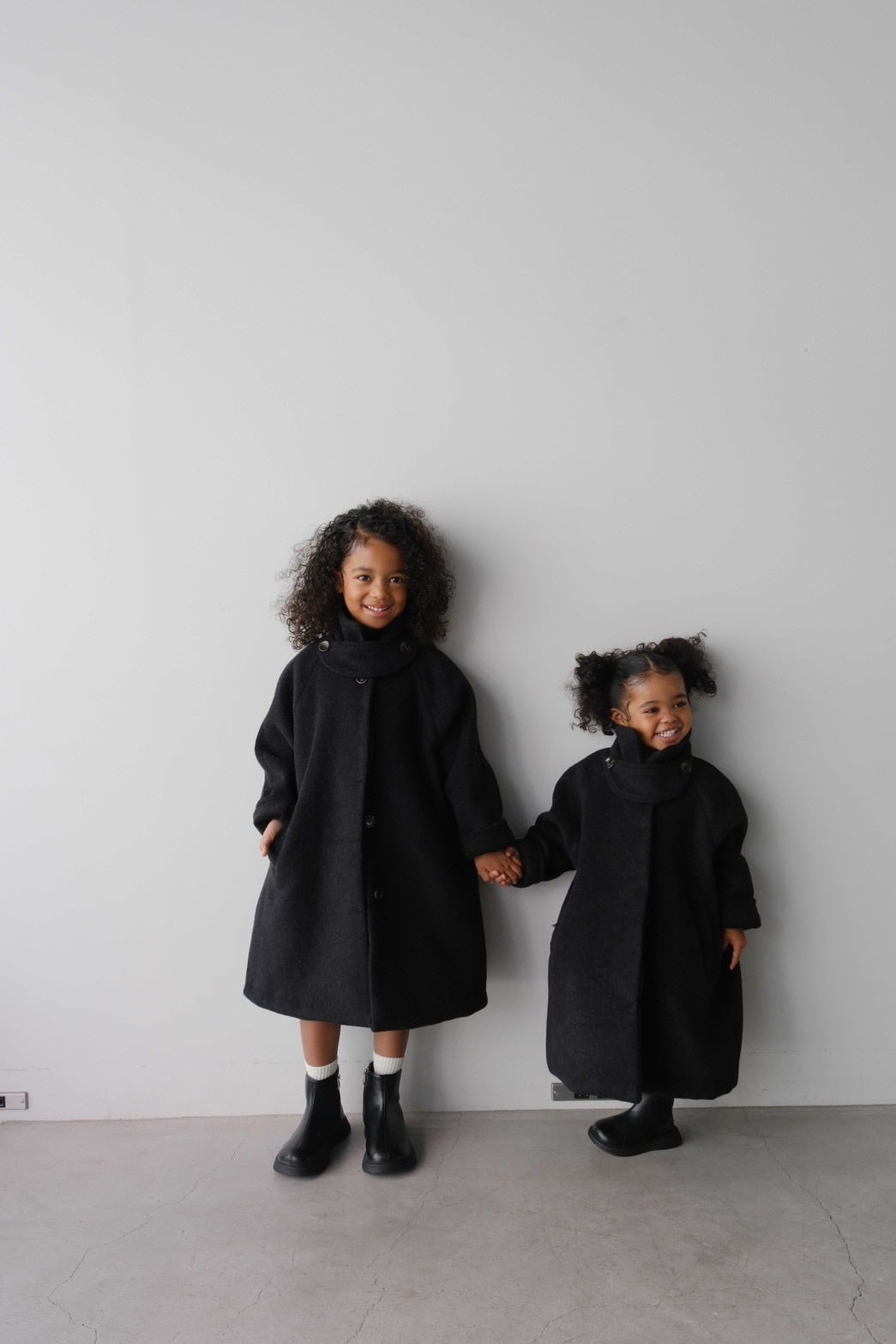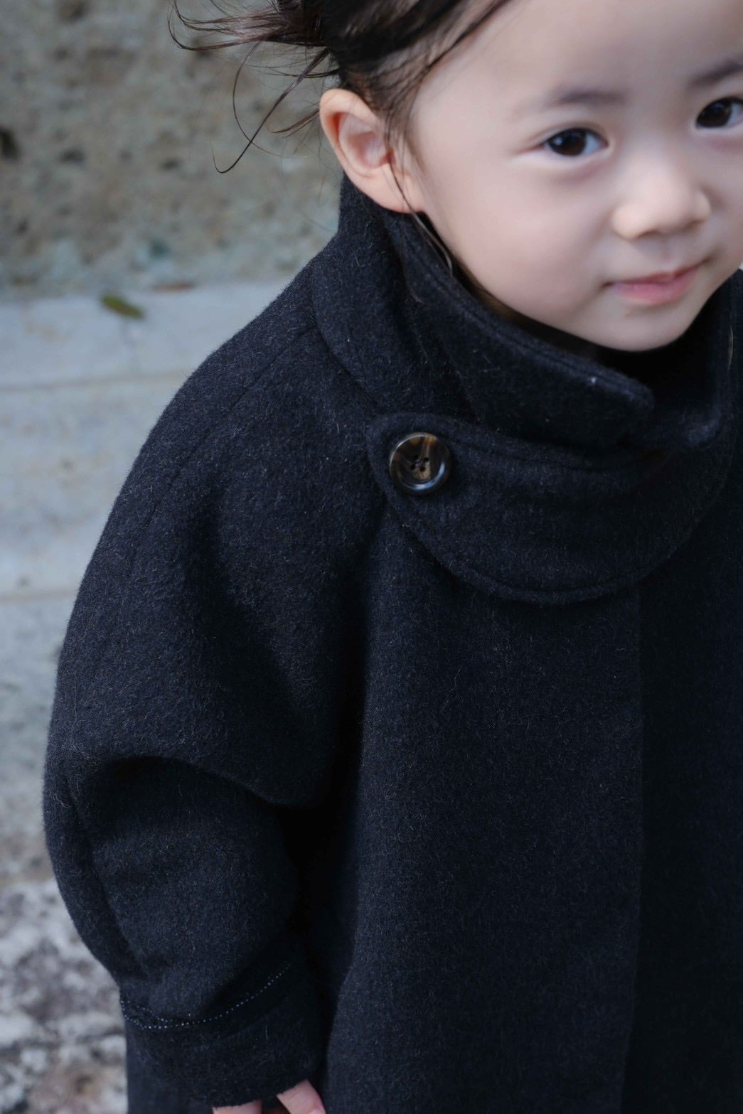 大人用の高級ウールコートをそのまま小さく、ミニマルに仕上げたchaisyならではの1着です。