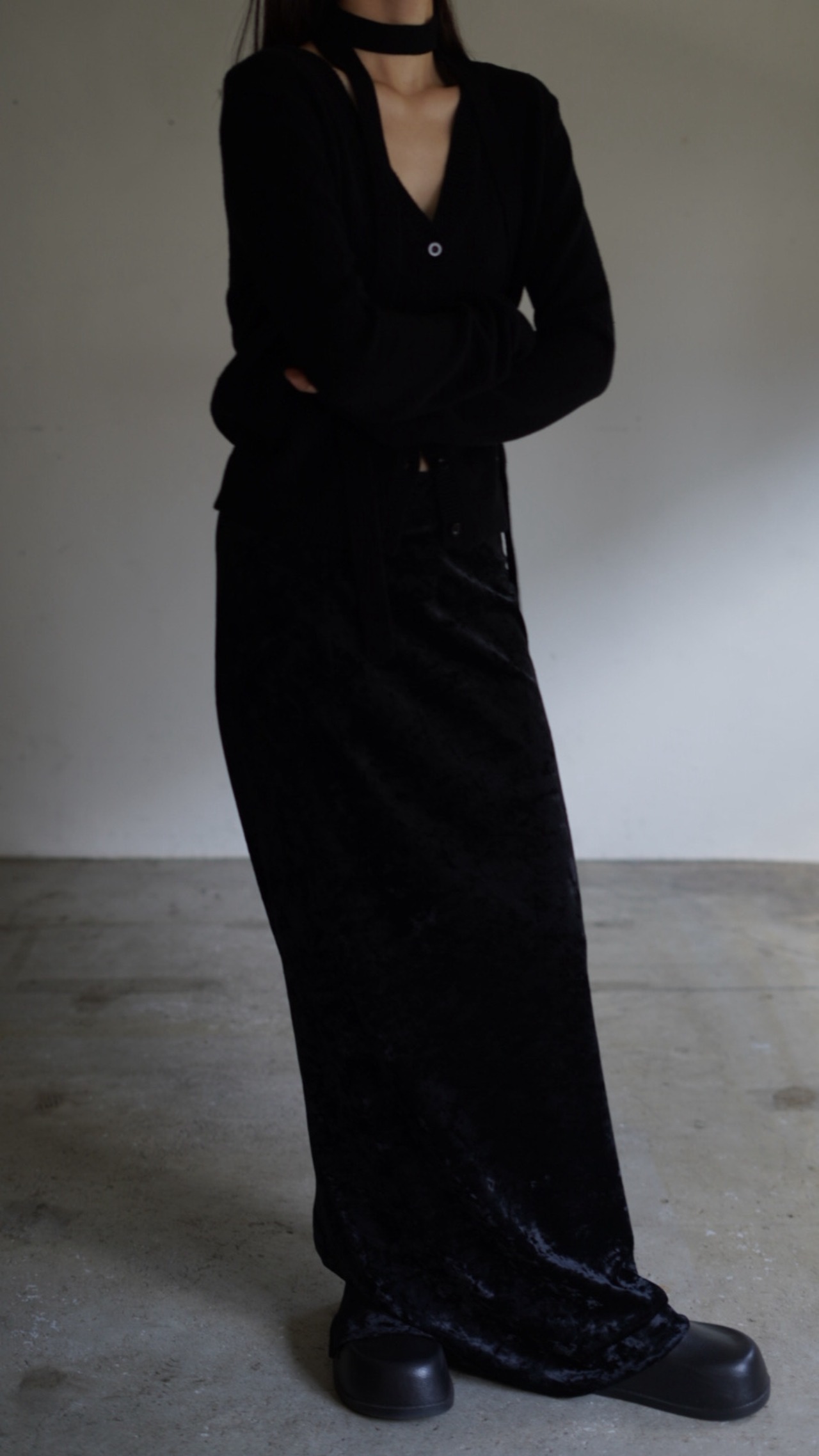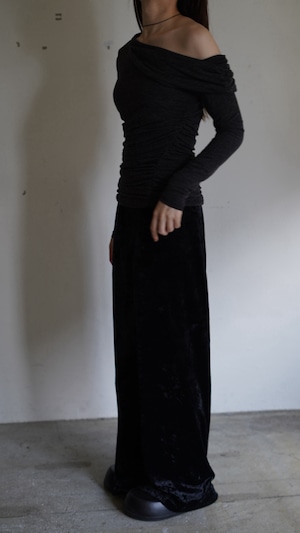 フルレングスのボトムスからつま先が見えるだけでも可愛いフォルムに。
