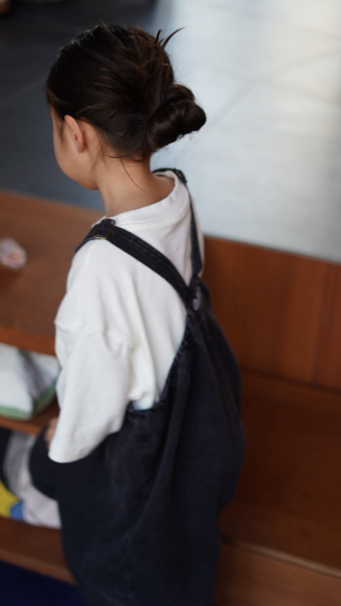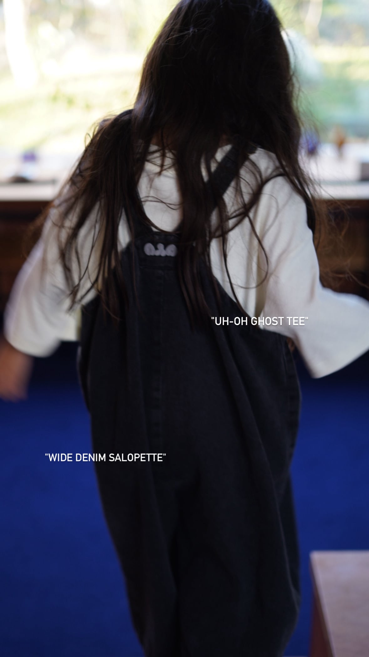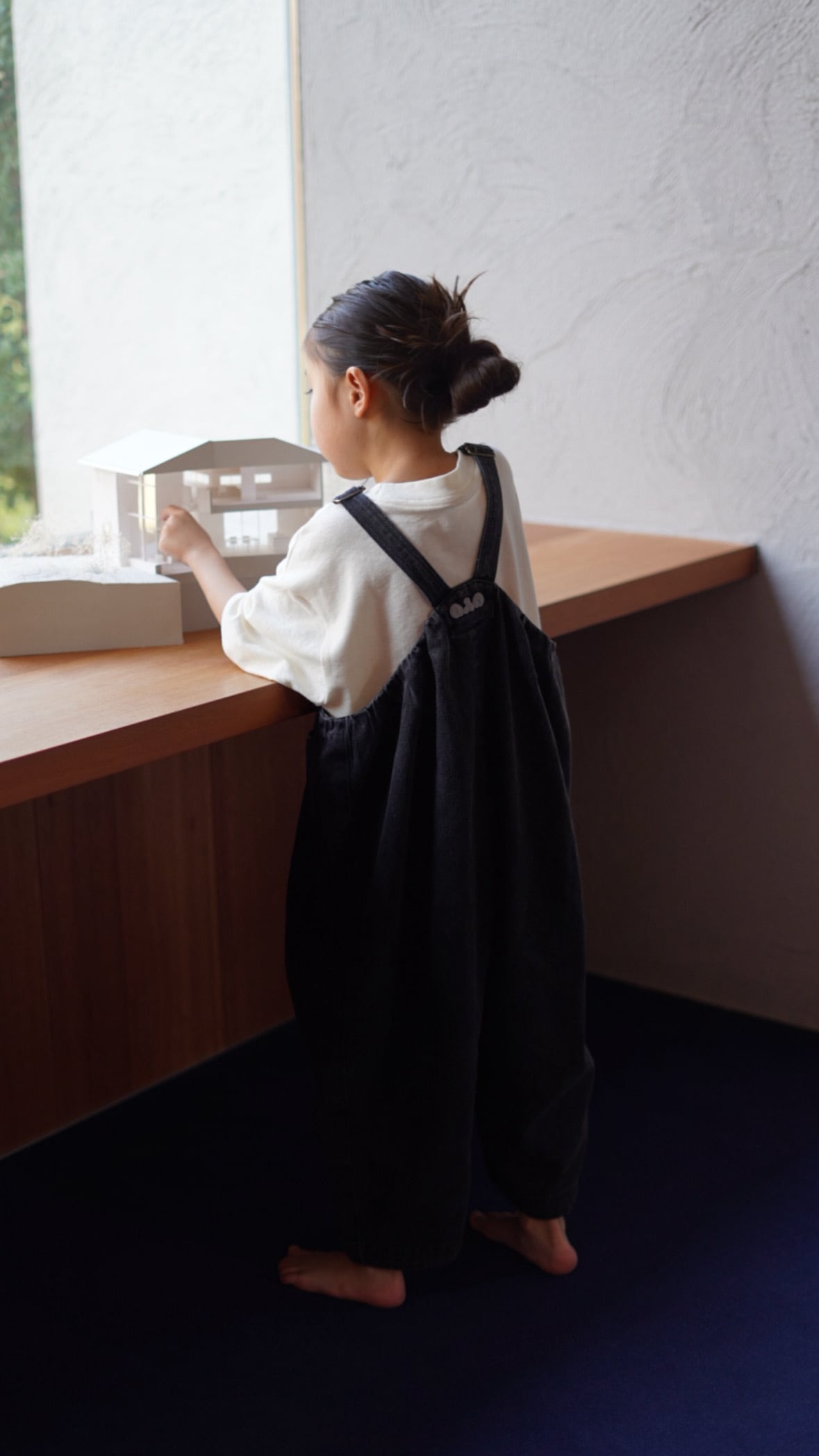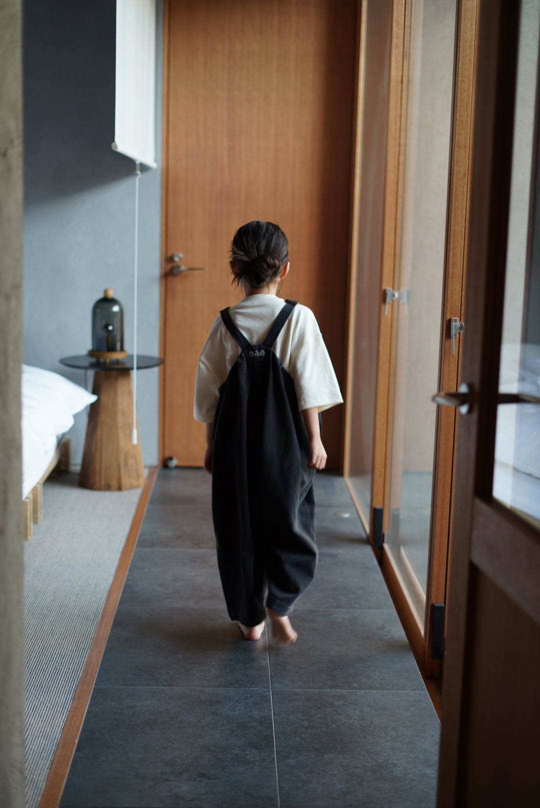 Wide Denim Salopette と合わせているオーバーTシャツ。