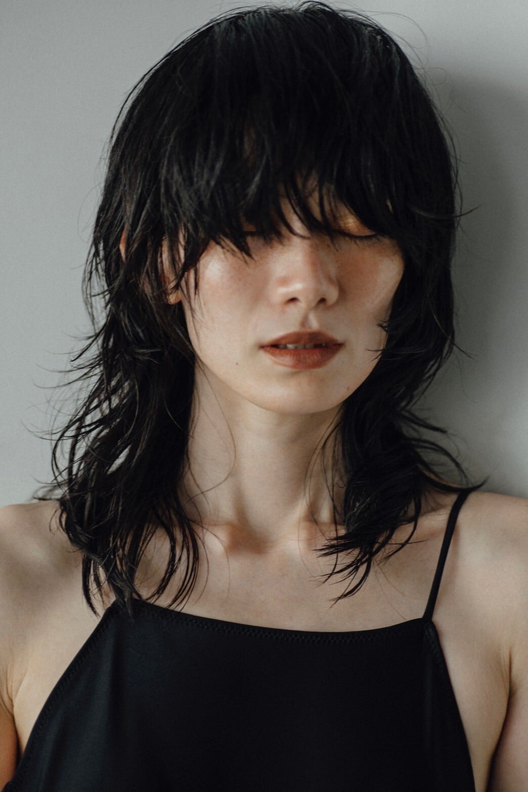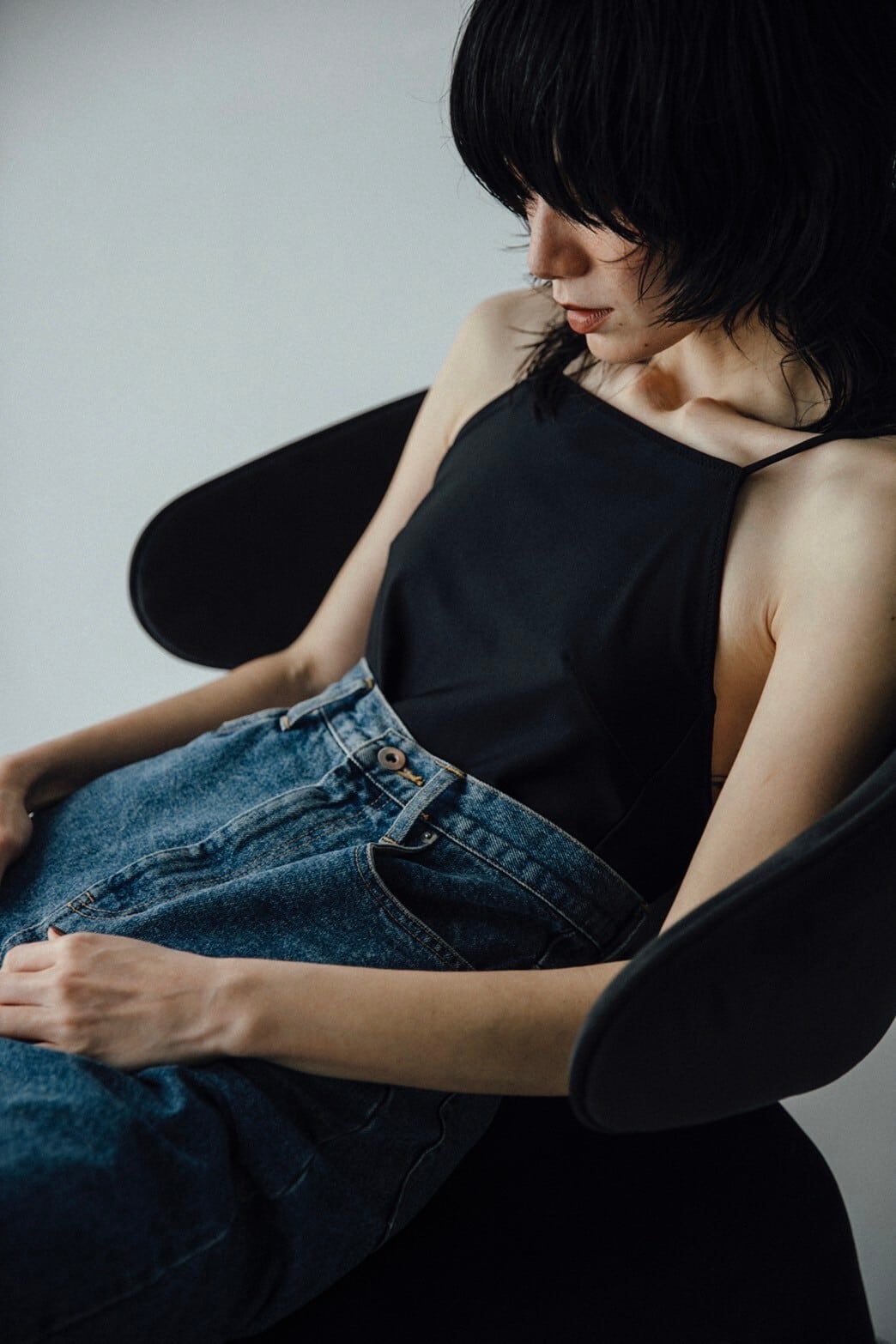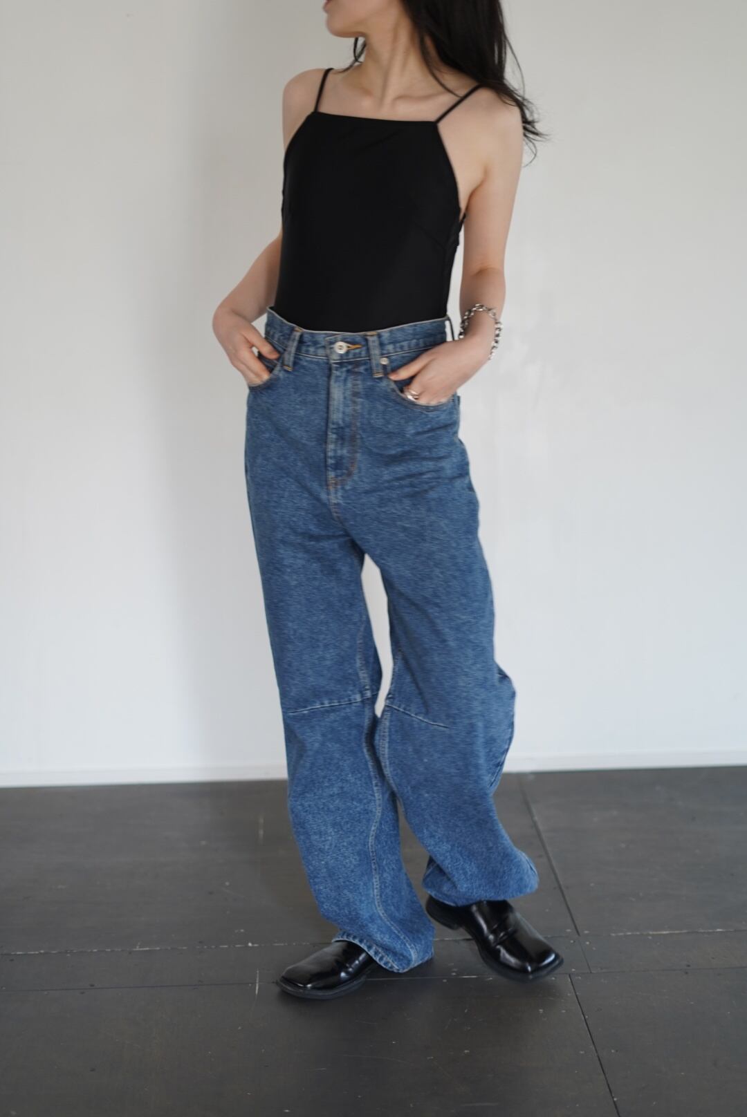 肩紐はできるかぎり華奢に、余計なものは削ぎ落としたキャミスーツデザインです