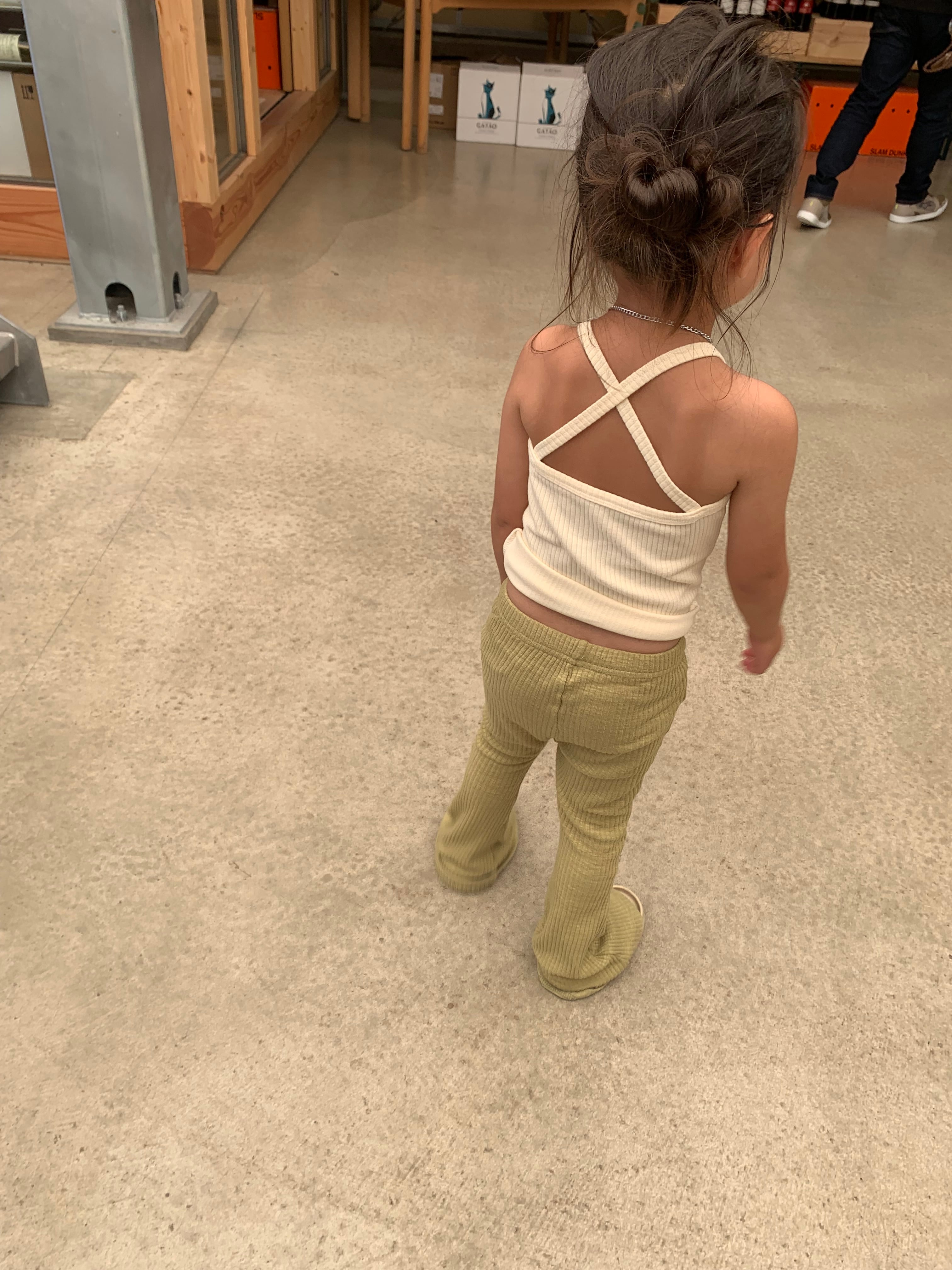 これはシルエットと生地の柔らかさと伸縮性、色味も全てが100点だったリブフレアパンツ