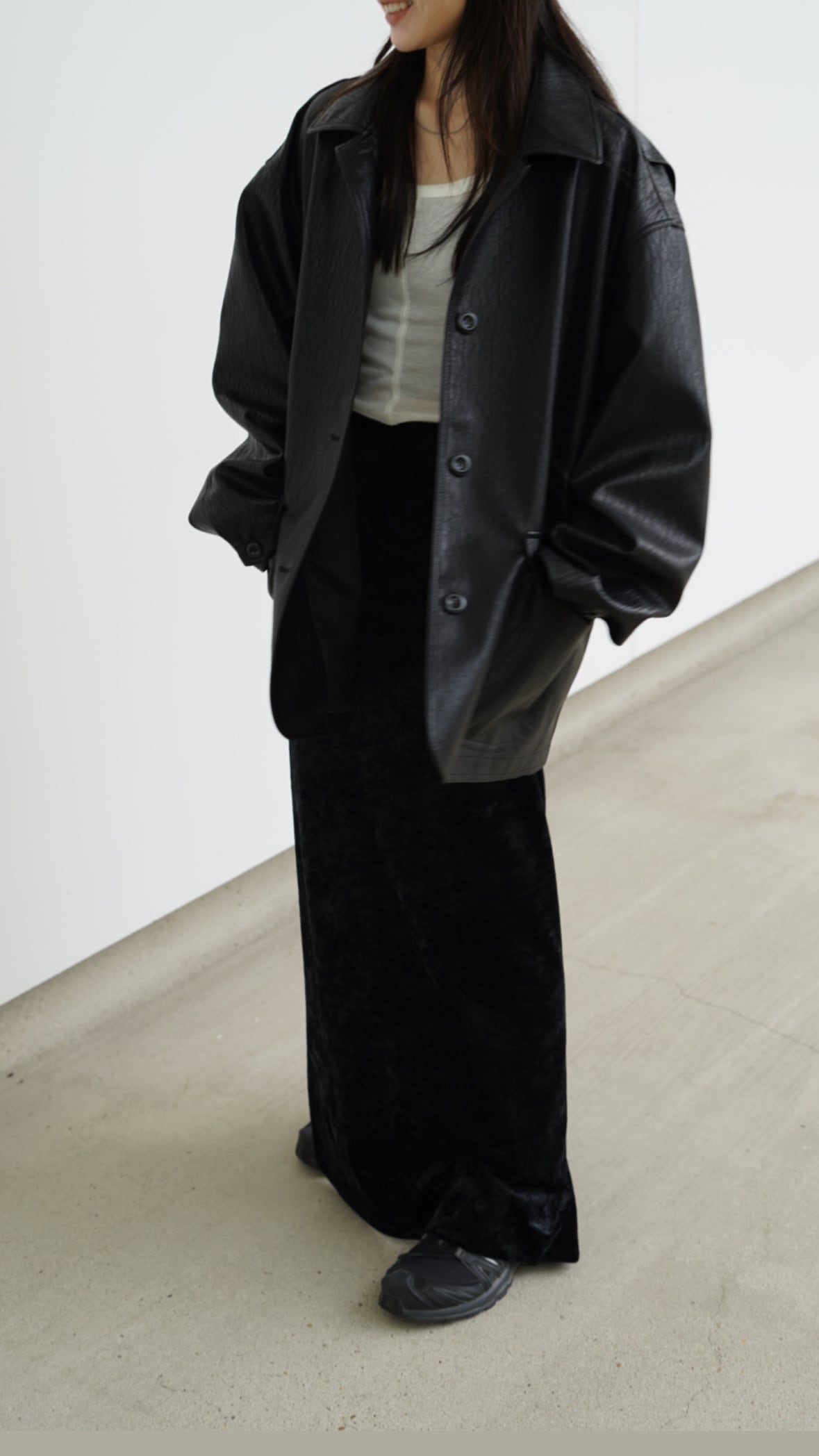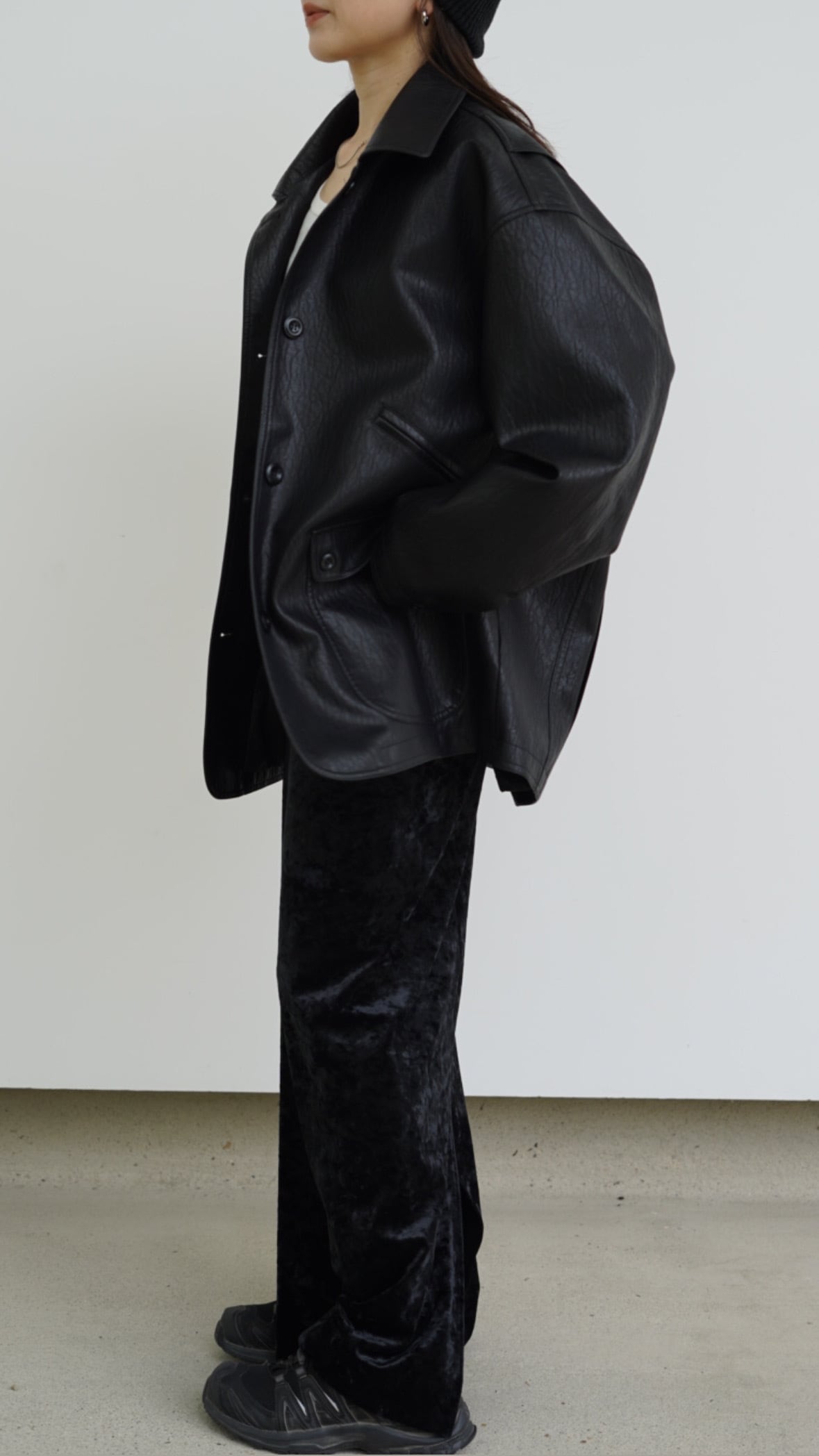 中に肉厚のニットやパーカーもお召しいただけますので冬場にもお勧めです◎